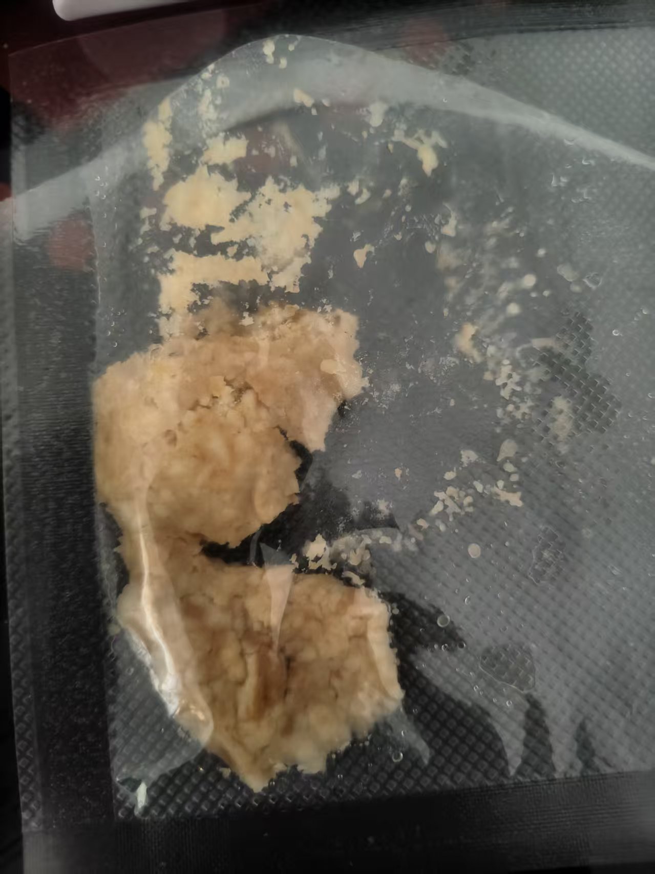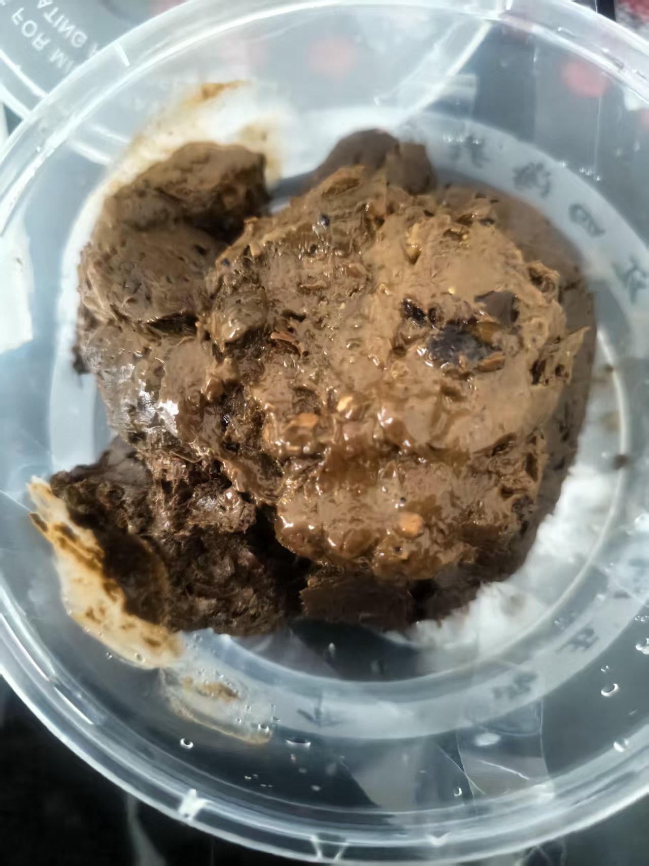 本人第一次发主题帖,文笔不好还请见谅。今天早上收到了之前x上买的黄金,黄金是棕色偏黑的,盒子上绑了八个胶带系的严严实实,掀盖后的味道有一股臭豆腐味,包装里带的有冰袋,黄金里面还有冰渣子,等到冰化差不多了,才拿筷子挑了一口,刚入口还没啥感觉,嚼起来里面像是有沙子一样硌,等到黄金混合着口水化开,真是又苦又臭,艰难下咽,第二口,就有点咽不下去了,我还买了一瓶圣水,晨的,混着咽了下去,到第三口、第四口,彻底不行了,依旧是敌不过生理抗拒。不过我发现圣水这东西冰的居然没那么大骚味和咸味,但是到后面放温了就有点喝不下去了。唉,第二次黄金再次挑战失败。