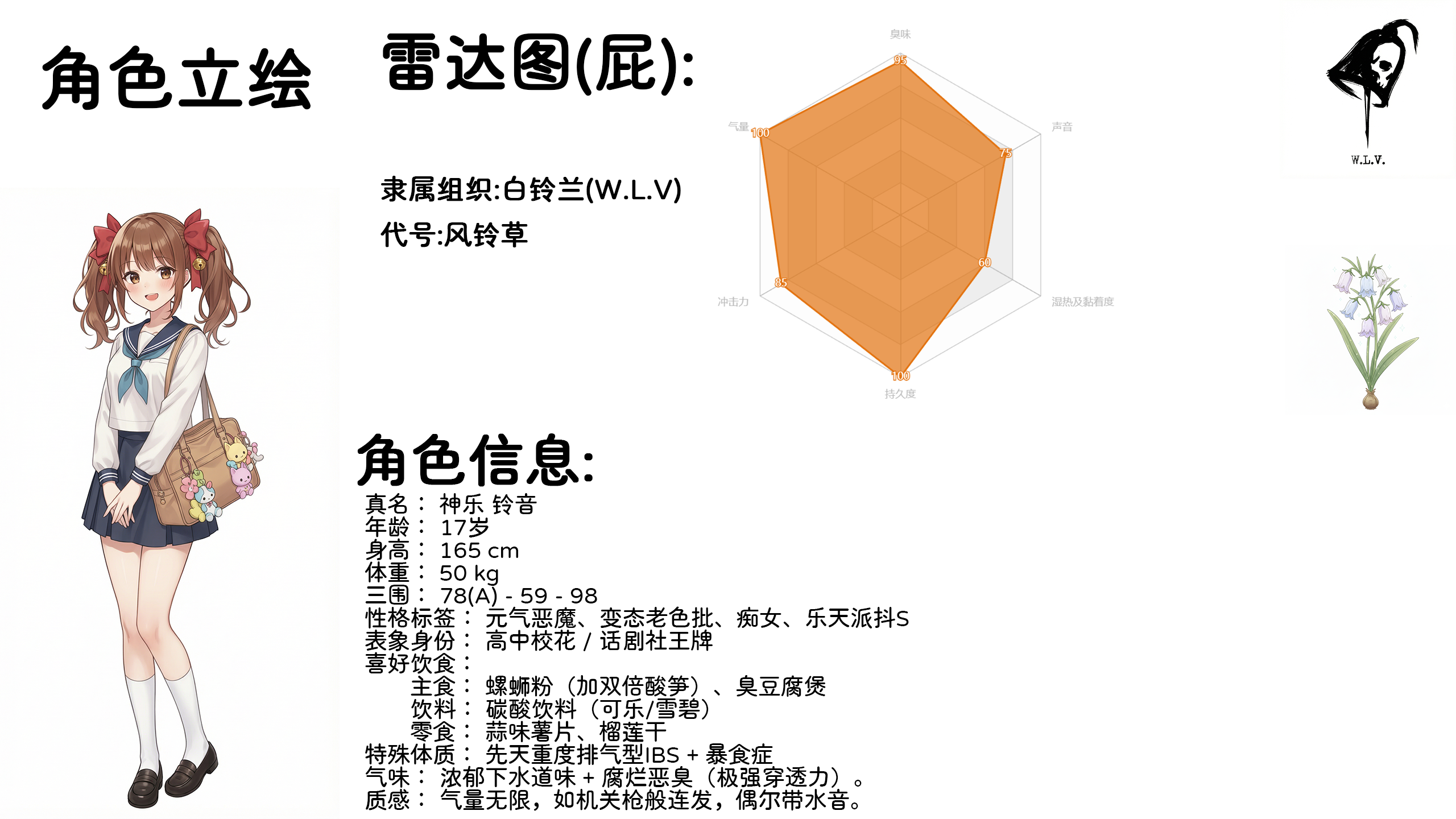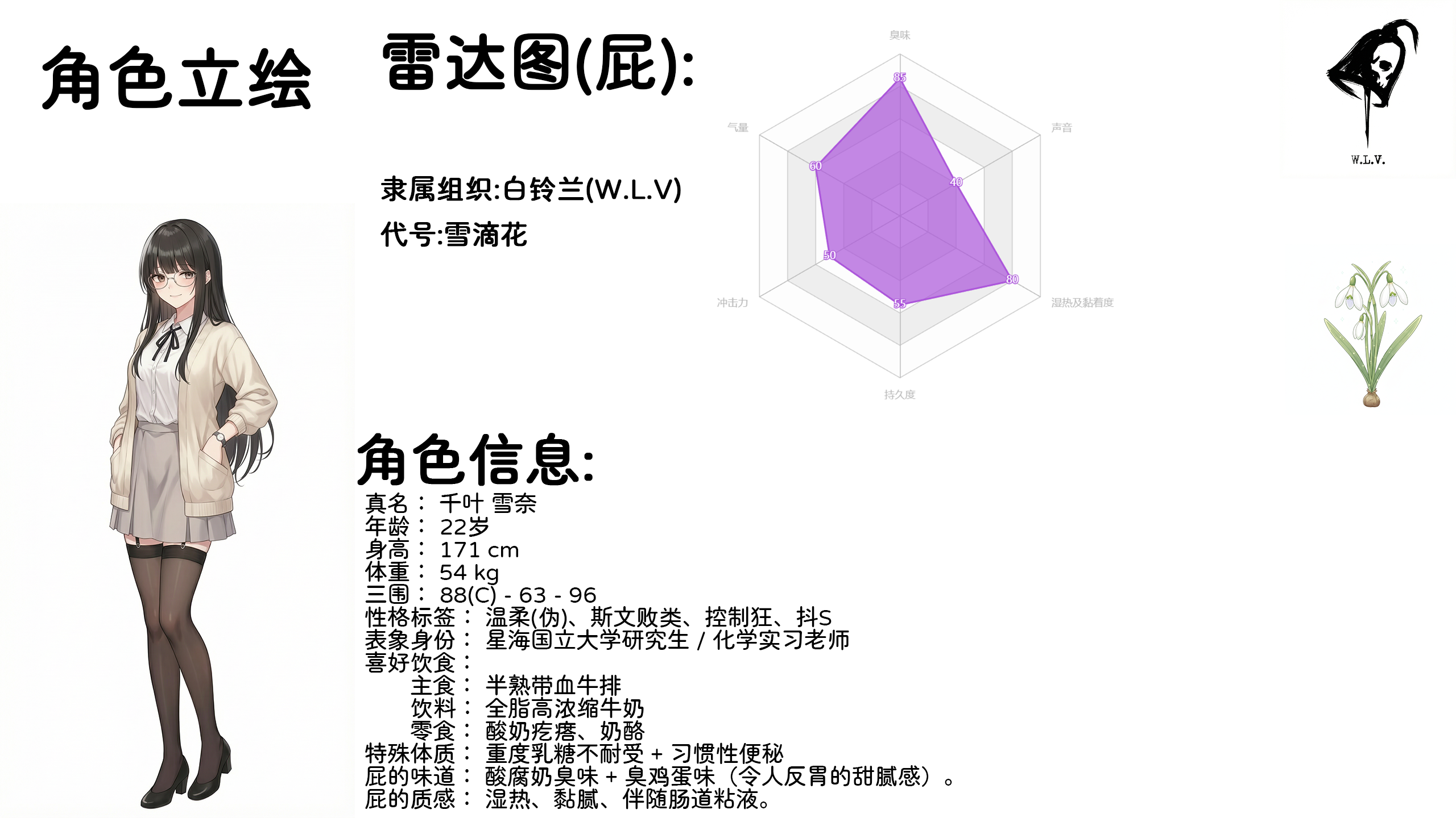 “这……这怎么可能……”小李颤抖着声音,感觉胃里一阵翻江倒海,“那个男人的脸……都被坐成紫色了?报告里说他是被‘毒气’熏死的?这真的是那群……资料里看起来柔柔弱弱的美少女干的?” “淡定点,年轻人。” 一个沧桑而沙哑的声音从旁边的工位传来。 资深联络员老王慢悠悠地转过椅子,那张饱经风霜的脸上写满了见怪不怪的淡然。他手里捧着一个掉了漆的老式保温杯,里面泡着枸杞和红枣,冒着袅袅热气。 “第一次见这种场面?”老王吹了吹浮在水面上的枸杞,抿了一口,眼神深邃得像是一潭死水,“习惯就好。这还算是‘体面’的死法了。至少留了个全尸,也没缺胳膊少腿。” “体面?!”小李指着屏幕,声音因为恐惧而有些走调,“王哥,这叫体面?这简直就是虐杀!而且是用……用那种方式……” 他实在说不出“屁股”和“屁”这两个字,那在他受过的精英教育里太过粗俗,但眼前的事实却又无比荒诞地指向了那个方向。 “在她们眼里,杀人跟踩死一只蚂蚁没什么区别。”老王放下保温杯,目光落在屏幕上那个剪刀手上,嘴角勾起一抹复杂的笑意,“而且,那种方式对她们来说,不过是一种‘游戏’罢了。别被她们档案里的外表骗了,小李。” 他顿了顿,语气变得有些森然,“那才是她们最致命的武器。越美丽的花,毒性越强。” 小李咽了口唾沫,试图平复狂跳的心脏。他打开了旁边的一个文件夹,里面是“白铃兰”成员的绝密档案。看着照片上那些青春洋溢、美丽动人的面孔——笑容甜美的校花、气质高冷的班长、温柔知性的女教师、还有那个红遍网络的可爱偶像……他怎么也无法将这些人与刚才那张恐怖的尸体照片联系在一起。 “可是……王哥,”小李还是有些不死心,“我看档案里,风铃草是名校优等生,罂粟是受万人追捧的偶像,那个雪滴花还是实习教师……她们在现实中都是女神级别的存在啊。应该……应该没那么变态吧?会不会是任务需要才……” “天真。” 老王冷笑一声,打断了小李的幻想,“你以为那是演技?不,那才是本性。现实里的女神形象,只是她们为了在这个无聊社会生存而戴上的面具罢了。等你在这一行干久了,你就知道什么叫‘粉红色的地狱’了。” 他指了指自己耳朵上挂着的耳机,脸上露出一种往事不堪回首的表情。 “你现在觉得她们正常,是因为你还是个新人。她们把你当成‘新鲜血液’,还不想这么快把好玩的玩具吓跑。所以她们暂时保持着矜持,发给你的消息也是正经的任务简报。” “但是,”老王话锋一转,眼神里透出一丝恐惧,“等过段时间你跟她们混熟了,让她们觉得你是个‘自己人’了,或者是放松警惕了,哼哼……” “会怎么样?”小李下意识地抓紧了扶手。 “各种奇怪的ASMR、视频、图片就会像轰炸机一样发到你的私人终端上。”老王痛苦地揉了揉太阳穴,“特别是那个代号‘风铃草’的丫头,如果她给你发私聊图片,哪怕缩略图看起来再诱人、再像是深夜福利,你也千万别点开!” “为、为什么?” “因为上次有个新来的实习生就不懂规矩。”老王叹了口气,“那小子以为艳遇来了,兴冲冲地点开了风铃草发来的一段名为‘睡前哄睡’的音频。结果呢?那哪是什么哄睡啊,那是整整两分钟的高清无码排泄声!甚至还能听见那种湿哒哒的水声!那小子当时正在吃咖喱饭,当场就吐得昏天黑地,后来请了一周病假,说是耳朵里长了屎,还得了咖喱PTSD。” 小李听得脸都绿了,下意识地把手里的咖啡推远了一点。 “还有那个‘龙葵’,”老王继续补刀,“别看她是个宅女,玩得更花。她会给你发那种精心录制的3D环绕音效,开头是那种让人骨头都酥了的小恶魔喘息,等你听得热血沸腾的时候,突然就是一声巨响的屁声炸在你耳边,还会问你‘射了吗?是不是被我的毒气迷住了?’……啧啧啧,现在的年轻人啊,心理承受能力太差。” 看着小李已经有些呆滞的表情,老王似乎觉得火候还不够,决定再加一把猛料。 他放下二郎腿,身体前倾,神情变得前所未有的严肃。 “刚才说的那些只是恶作剧,顶多恶心你一下。但有一条铁律,你必须记住了,否则你会没命。” “什么铁律?”小李紧张地问道。 “千万,千万别想着跟她们谈恋爱,或者私下见面。”老王一字一顿地说道,每个字都像是从牙缝里挤出来的,“那是找死。” “以前有个蠢货,是个富二代公子哥,靠关系进来的。他看了档案后对那个偶像‘罂粟’迷得不行,觉得那是真爱,非要动用权限去约人家线下‘面基’。” “然后呢?” “然后?”老王冷笑,“罂粟倒是答应了。结果那小子去了之后,就被当成了‘活体教具’锁在了地下室。整整一周啊!他被绑在椅子上,每天除了被迫吞食罂粟那个便秘了半个月的肚子排出来的‘存货’之外,没吃过一口正常的饭。等我们的人根据定位把他救出来的时候,他已经被玩得神志不清,直接进了ICU洗胃。现在这人还在精神病院住着呢,看到女人就哆嗦,闻到香水味就会条件反射地呕吐。” “嘶——”小李倒吸一口凉气,只觉得后背发凉,头皮发麻。 “这还不算最惨的。” 老王似乎陷入了某种更深沉的回忆,眼神变得有些飘忽,“我有一次……是被上面指派,去跟No.1 雪滴花线下交接一份绝密情报。那是必须面对面的任务,躲都躲不掉。” 提到“雪滴花”这个名字时,小李注意到老王握着保温杯的手微微颤抖了一下。 “那女人……”老王深吸了
