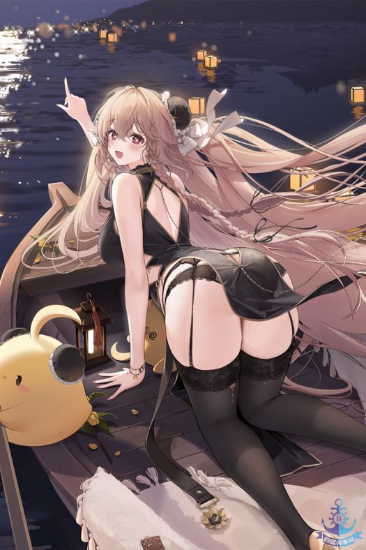 安克雷奇刚才穿着睡衣时还只是若隐若现的雪白肌肤此时大片大片地展现在指挥官面前——后背、腰腹、肩膀,甚至就连臀部这种比较私密的位置都只剩下了一点聊胜于无的布料遮掩,露出了旗袍下那蕾丝黑色内裤——甚至就连这内裤都被精简到了极致,不仅绝大部分的布料都被省去,甚至型号都稍微显小,将安克雷奇的皮肤勾出几条更能展现其身材的曲线。从头看到脚,竟然只有那一双吊带黑丝还在敬业地执行自己身为服饰遮蔽躯体的功能。